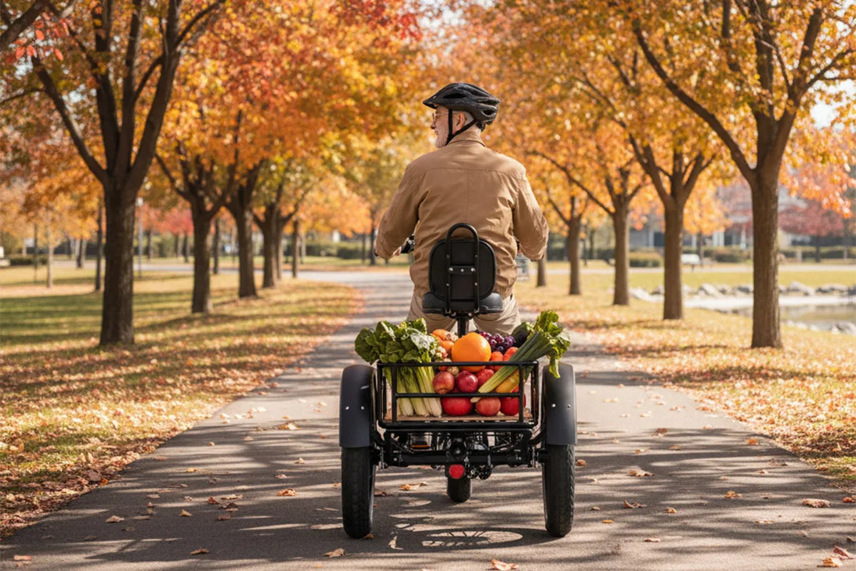 Angetrieben von einem hochwertigen LG 48V 15Ah (720Wh) Lithium-Ionen-Akku und einem leistungsstarken Motor mit 85 Nm Drehmoment , bietet das Cargo Pro im Eco-Modus eine beeindruckende Reichweite von 150 km . Die 20" x 3,0" großen Breitreifen , die 120-mm-Hydraulikfederung und der gepolsterte Sattel mit Rückenlehne sorgen für eine stabile, sanfte und komfortable Fahrt – selbst bei schwerer Beladung.