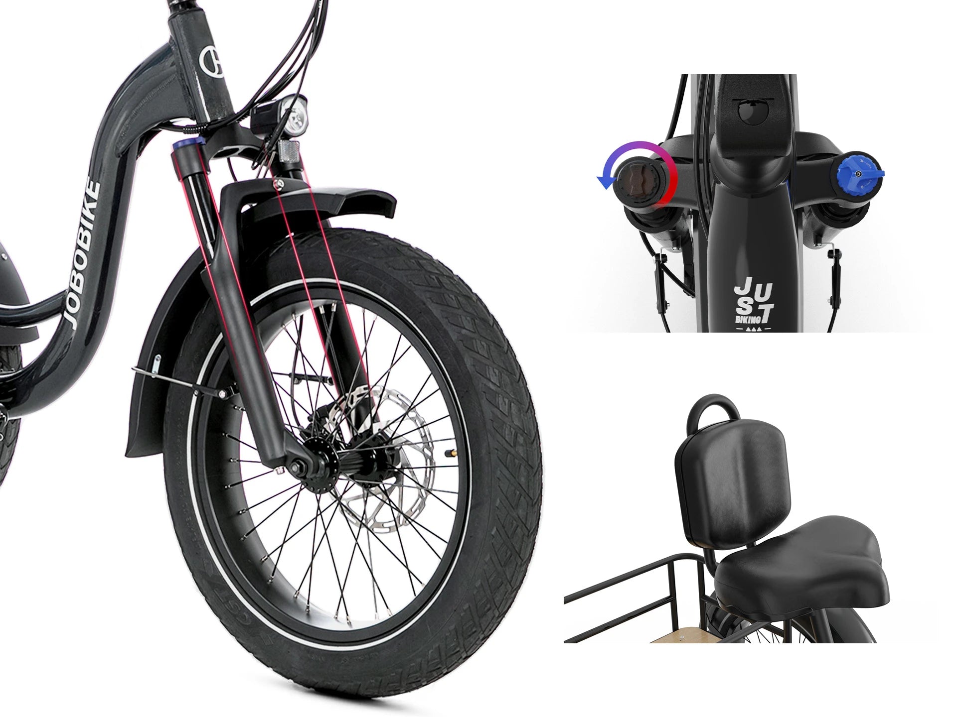 Ultimativer Komfort: Bequemer, gepolsterter Sattel mit Rückenlehne – stützt Ihren unteren Rücken bei langen Fahrten.